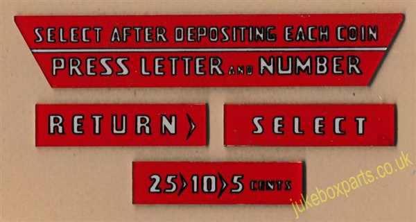 • Wurlitzer 1700 & 1800 Set of Instruction Plastics