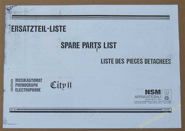 NSM City II Spare Parts List