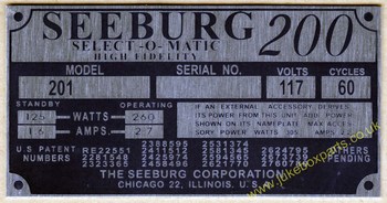 Seeburg 201 Aluminium Identification Plate