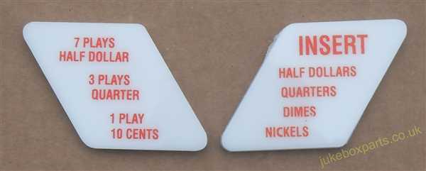 Wurlitzer 2400-2500 Series Coin Insert / Price of Play Instruction Plastics