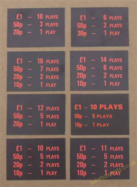 Wurlitzer OMT Selection of Pricing Cards (WP30)